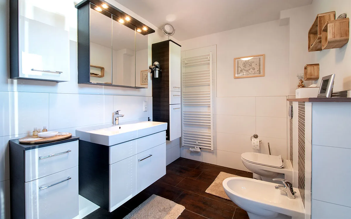 Bei der Einrichtung haben wir auf außergewöhnlichen Komfort gesetzt. Unsere Küchenausstattung mit Side-by-Side-Kühlschrank inklusive Wasser- und Eiswürfelspender, einer Küchenmaschine sowie der Heißluftfritteuse und dem Kontaktgrill genügt höchsten Ansprüchen. Kuscheln Sie sich am Abend bequem in das großzügige Ecksofa, lauschen Sie dem knisternden Kamin oder schauen Sie auf dem Smart-TV im XXL-Format Ihren Lieblingsfilm. Für Fußballfans haben wir Sky Business mit allen Bundesligaspielen freigeschaltet. Für interaktive Abende gibt es eine Auswahl an Büchern und Spielen. Kostenloses WLAN komplettiert unseren Service.